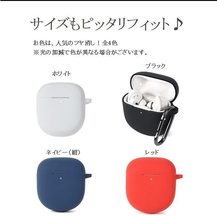 カラーは、4色です。 素材は、シリコン製です。 おまけは、固定具(カラビナ)×1、お手入れクロス×1が付いています。 ※イヤホン本体は、含まれません。